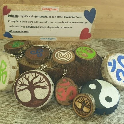 Distintos amuletos con la firma Subagh, que significa; afortunado eres tú y todos los que te rodeen.