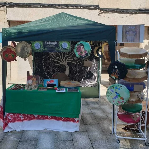 Stand de venta de instrumentos Chamánicos y amuletos ritualizados.